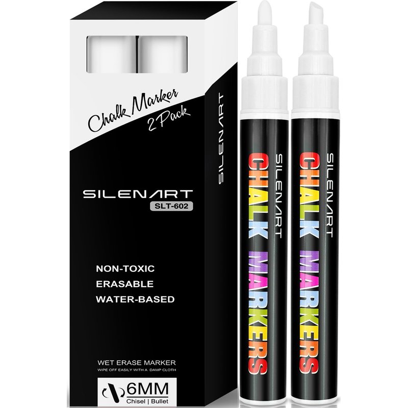 SILENART White Liquid Chalk Markers - Chalk Markers White - White Dry Erase Markers Pen - for Chalkboard Signs, Windows, Blackboard, Glass - 3-6mm Chisel Tip, 3mm Fine Tip