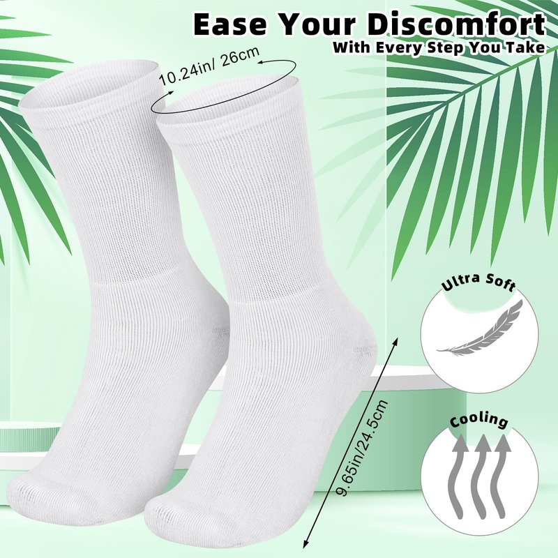 Features: Designed to be suitably worn with shoes, these eczema clothing offer the ideal balance between comfort and suitable thickness, providing unexpected convenience for you. The fiber material of our eczema socks can relieve the discomfort caused by dry skin and eczema. You can wear them with confidence. Specifications: Material: fiber Color: white Package includes: 4 Pairs of eczema socks Notes: Manual measurement, please allow slight errors on size. The color may exist a slight difference due to different screen displays.