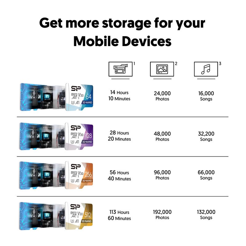 The Superior Pro Series memory cards feature the UHS-1 specifications that enable fast transfer speeds to save you more time when moving data from your card to other devices. Also, it supports Full-HD/ 4K video recording so that you can capture HD videos without annoying lags and dropouts. *To reach the maximum read/write speed, a UHS-I enabled and USB 3.0 reader or host device would be recommended. Ideal for Up-to-date Gadgets Equipped with the Class 10 speed, the Superior Pro microSD series can bring high-tech gears such as sports cameras into full play! You may also place it in some portable speakers for more appealing music. Waterproof, Shockproof, Temperature-proof and X-ray proof Even if you are doing outdoor activities in some extreme climate conditions, the Superior Pro series can still survive from water, shock and wide-temperatures storage ranging from -40ºC to 85ºC! Moreover, the Superior Pro series is immune to airport X-rays so there is no need to worry when travelling overseas. Add More Storage for Your Mobile Devices Hard to choose which one to delete? The Superior Pro microSD series is available from 64GB to 1TB so you can instantly free up the storage of your mobile devices.