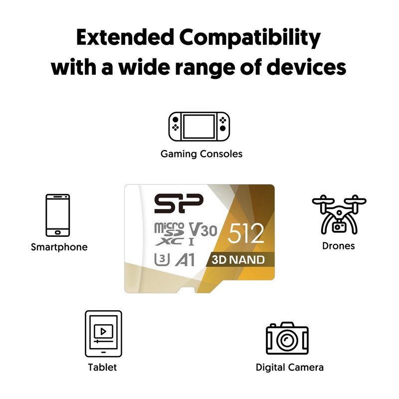 Silicon Power 512GB Micro SD Card U3 SDXC microsdxc High Speed MicroSD Memory Card for Steam Deck, Nintendo-Switch, DJI Pocket 3 and Drone