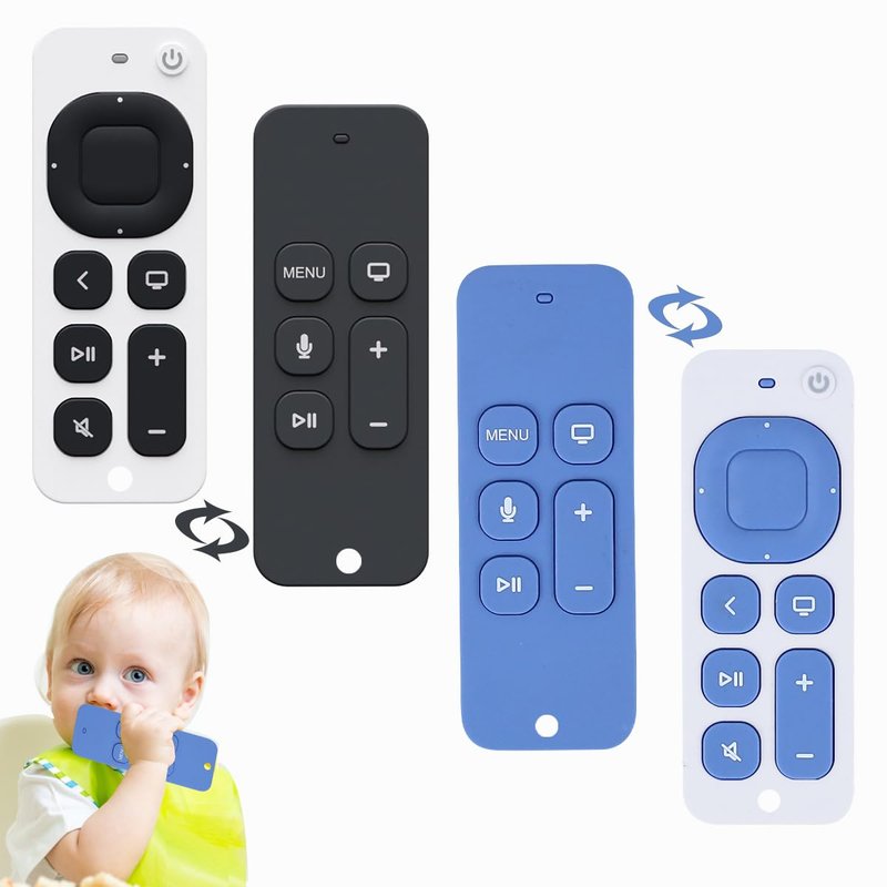 - [Teether Toy for Baby]--These silicone remote is soft and flexible, for chewing and soothing baby's gums, effectively relieve baby's teething discomfort. Freezing the teether toy will be better for the discomfortable the gums.