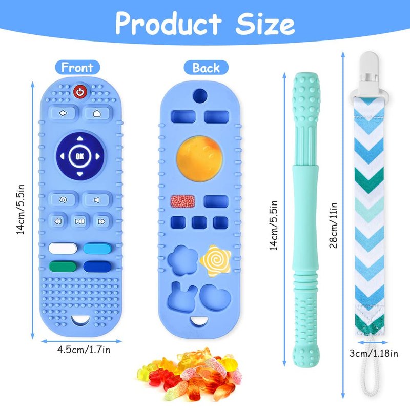 - 🎁【Perfect Gift】Silicone Toddler Teething Toys is perfect for babies aged 3 months+. Whether your baby is a boy or a girl, our soft remote control toys are perfect for them. It is also a must for babies, the best gift for teething babies on Thanksgiving and Christmas!