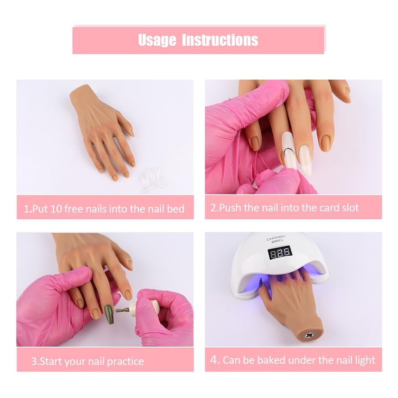 - Reusable - Reuse your silicone hands over and over again to practice and test new styles of acrylic nail artwork. You can glue nail tips to your silicone hands to practice and then simply soak off the nails with acetone and start over.