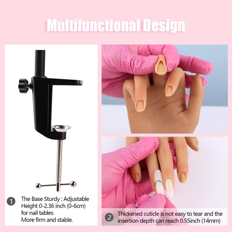 - Comes with a Stand-The silicone nail practice hand comes with a removable and adjustable stand, the hand can stand at table very stable. can be bent at any angle, you no longer need to buy a table clip separately, it is more convenient to use.