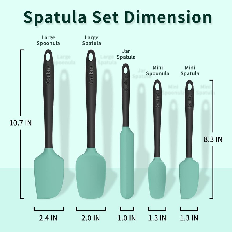 Silicone Spatula Set of 5,High Temperature Resistant, Food Grade Silicone, Dishwasher Safe, for Baking, Cooking (Aqua Green)