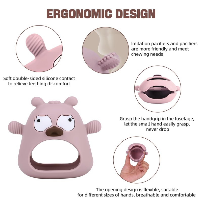 - 【Teether toy for 0-6-12 month】Teething toy is the best infant toy. Mouthing helps babies explore the world using their senses to learn about texture, taste and temperature and build muscles they will use later in life for eating and speaking. Dog design buddy teether helps baby explore the work in a healthy and safe way.