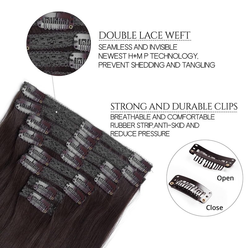 - 【More Comfortable & Healthier】Unlike traditional hair extensions, clip hair extensions is no tape no glue, no damage to scalp and hair, can blend perfectly with your hair color, no one knows you have hair extensions! Strong clips not easy to slip off.
