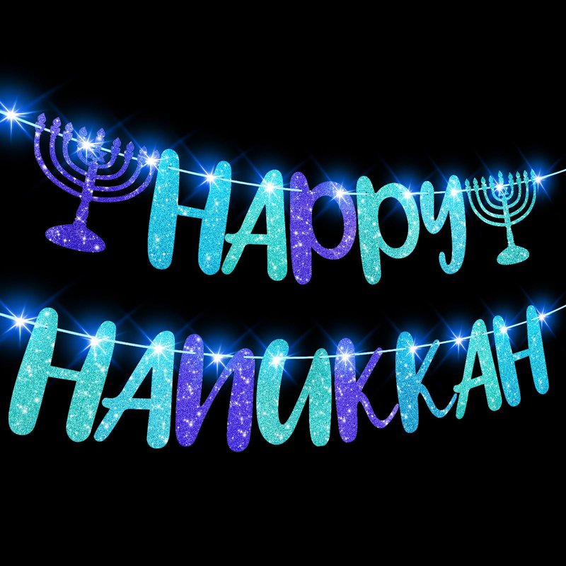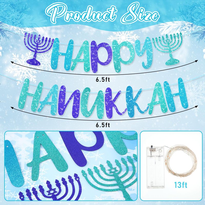 - Pakege Include: you will receive a set of "HAPPY HANUKKAH" and Hanukkah Menorahs banner with blue string lights; Exquisite decorations to meet your Hanukkah decor needs and make your home full Hanukkah of atmosphere