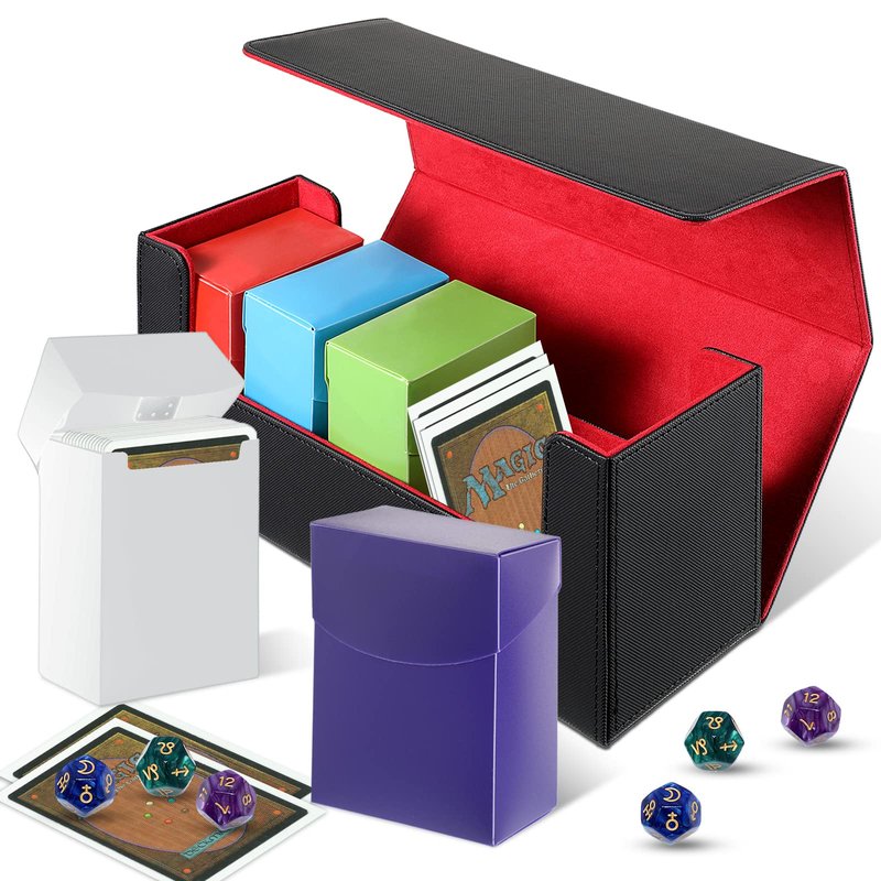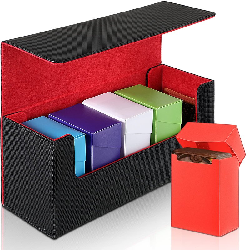 Silkfly 6 Pieces Deck Card Storage Box, 1 Leather Deck Case with 5 Plastic Decks Card Boxes Playing Deck Cards Box Compatible with MTG TCG Commander Card (Black and Red)