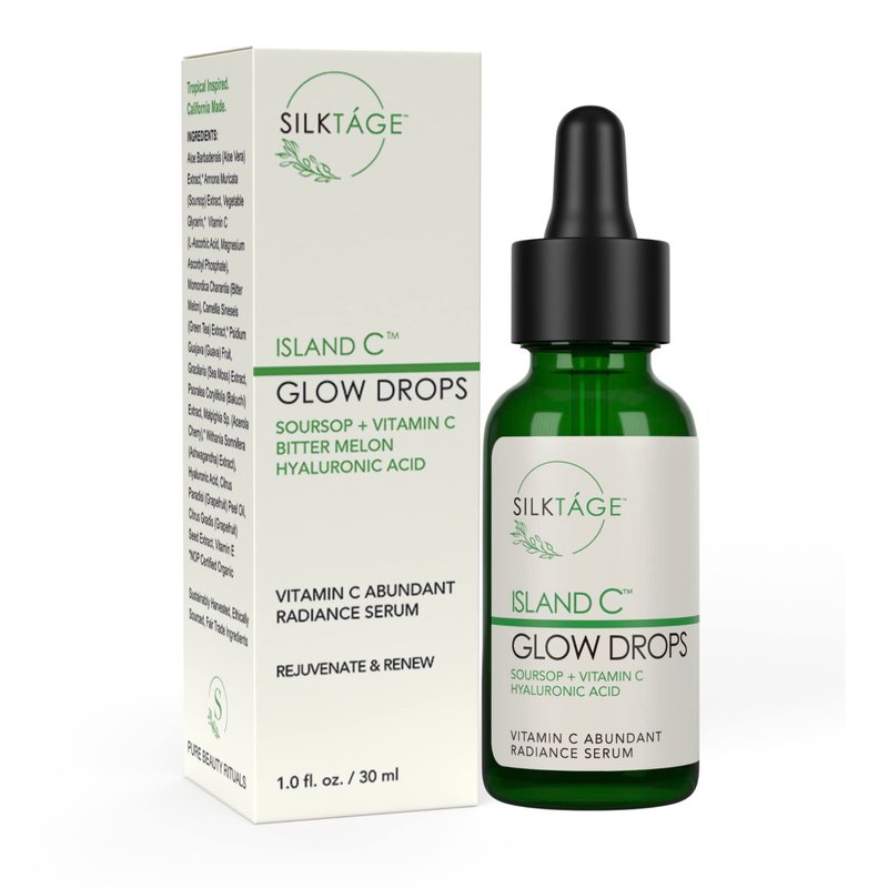 SILKTÁGE Island C Glow Drops - Anti Aging Soursop Vitamin C Face Serum with Hyaluronic Acid & Bitter Melon - Evens Skin Tone, Wrinkles, 1 Fl Oz