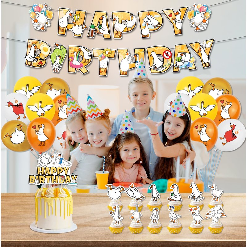 Silly goose Birthday Party Decorations with Geese Balloons banner and Cupcake Toppers