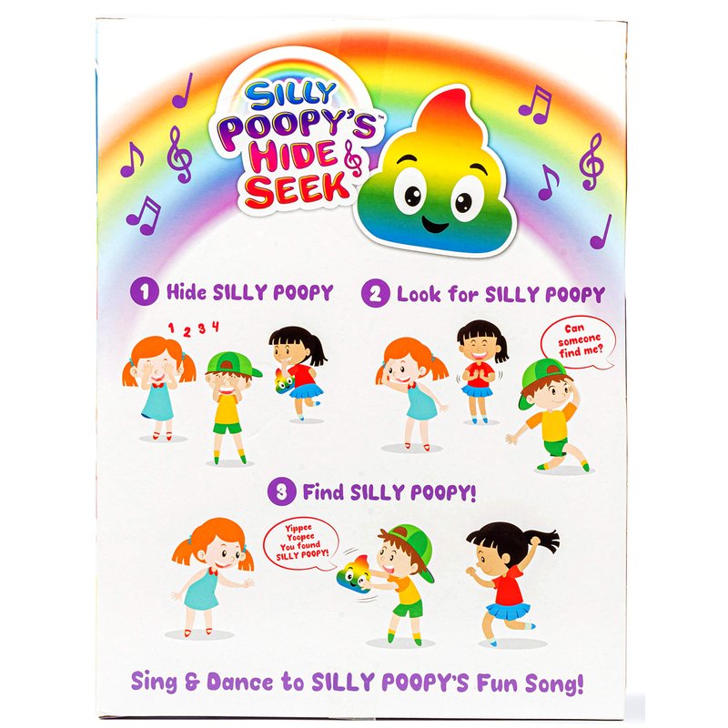 - How To Play: It’s as easy as 1, 2, 3! Just hide Silly Poopy, look for Silly Poopy, and find Silly Poopy to hear a special song that makes you want to boogie. Great for both indoor and outdoor toy play.