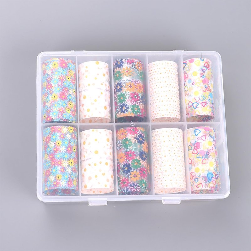 • Package Content - 10 rolls flower nail foil sheets, with 10 kinds of flower design, bright color and sufficient quantity the size of each roll is 4cm x100cm/1.57inch×39.4inch. larger size is more suitable for gel acrylic nails.