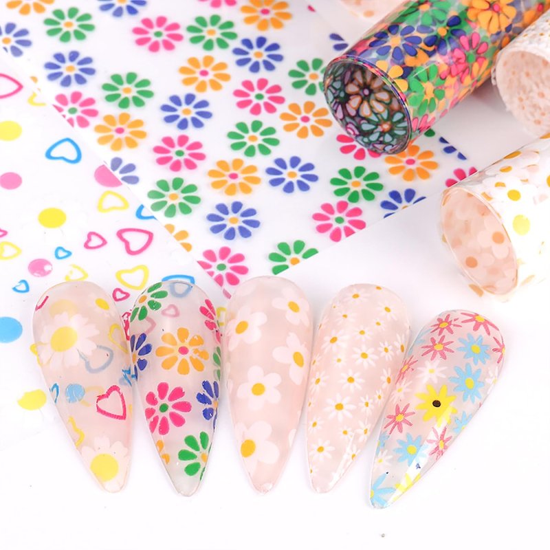 SILPECWEE 10 Rolls Flower Nail Foil Daisy Nail ...
