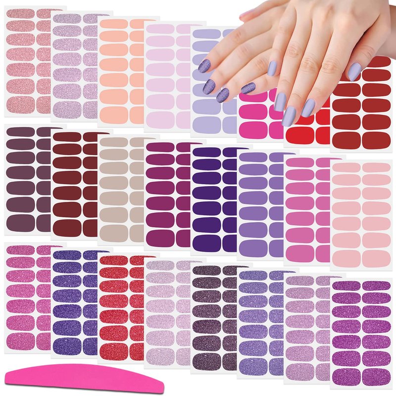 SILPECWEE 24 Sheets Glitter Solid Color Nail Wraps for Women Nail Polish Strips Self Adhesive Nail Polish Stickers Gel Nail Strips for Nail Art Fingernail Manicure Stickers with 1pc Nail File