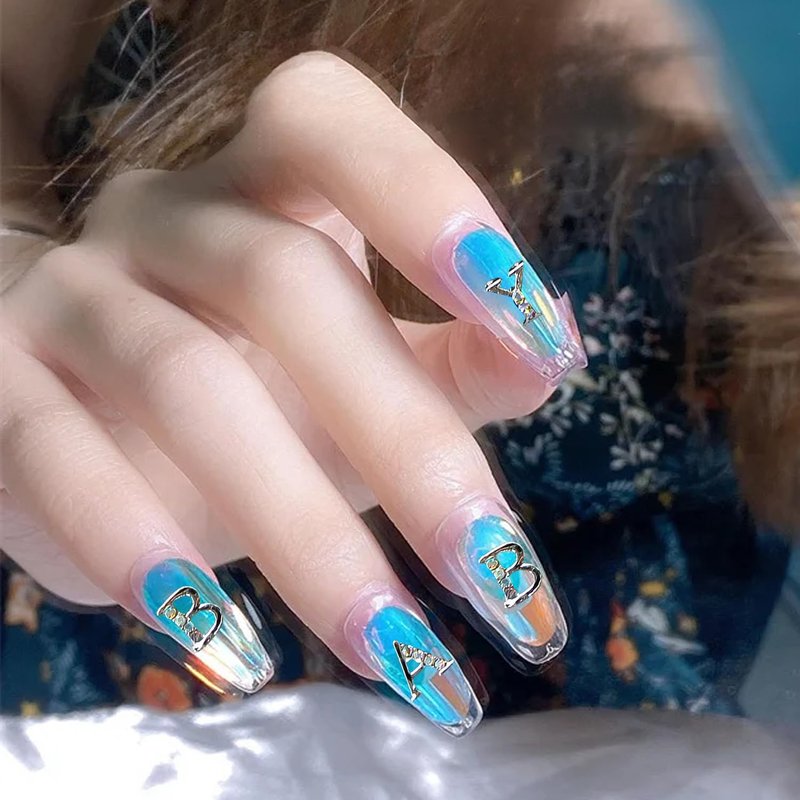 2.Use tweezers hold the letter nail charms, put on nail surface. (don't move it randomly after fixing it).