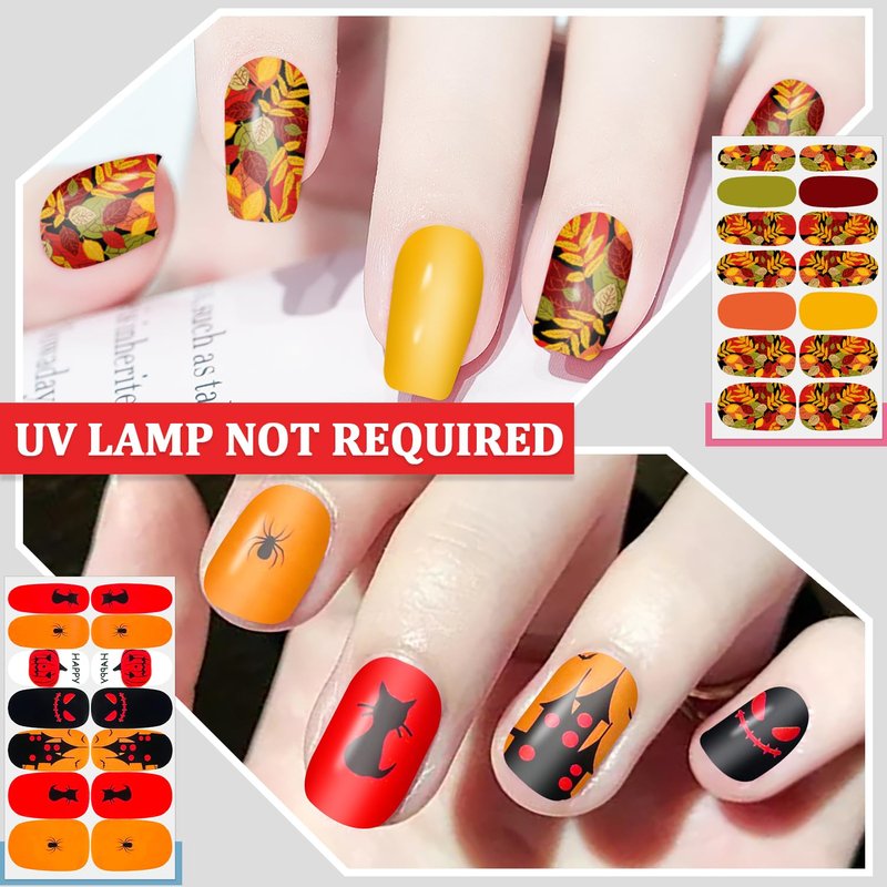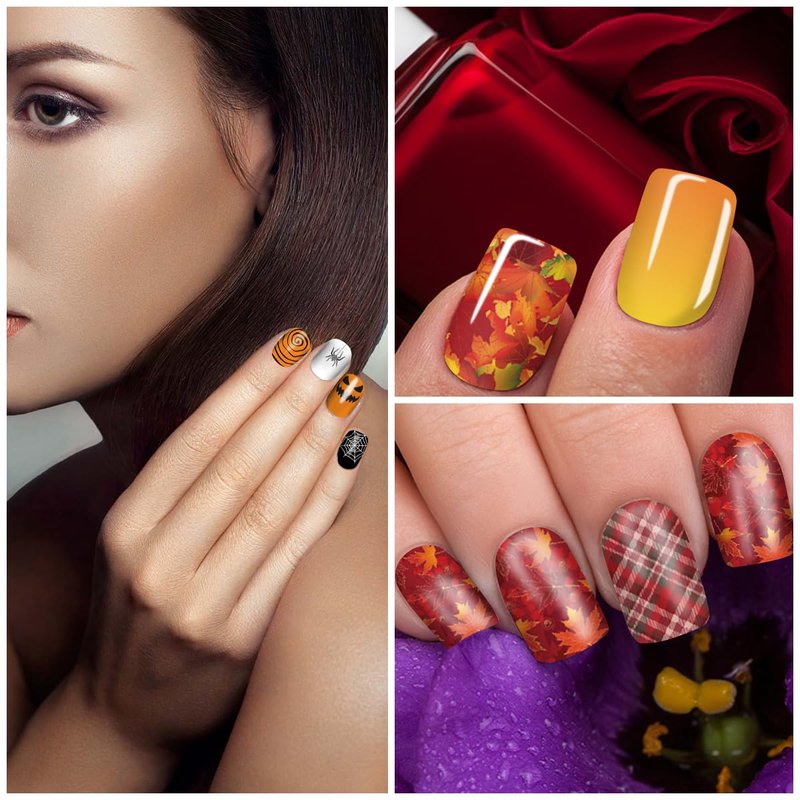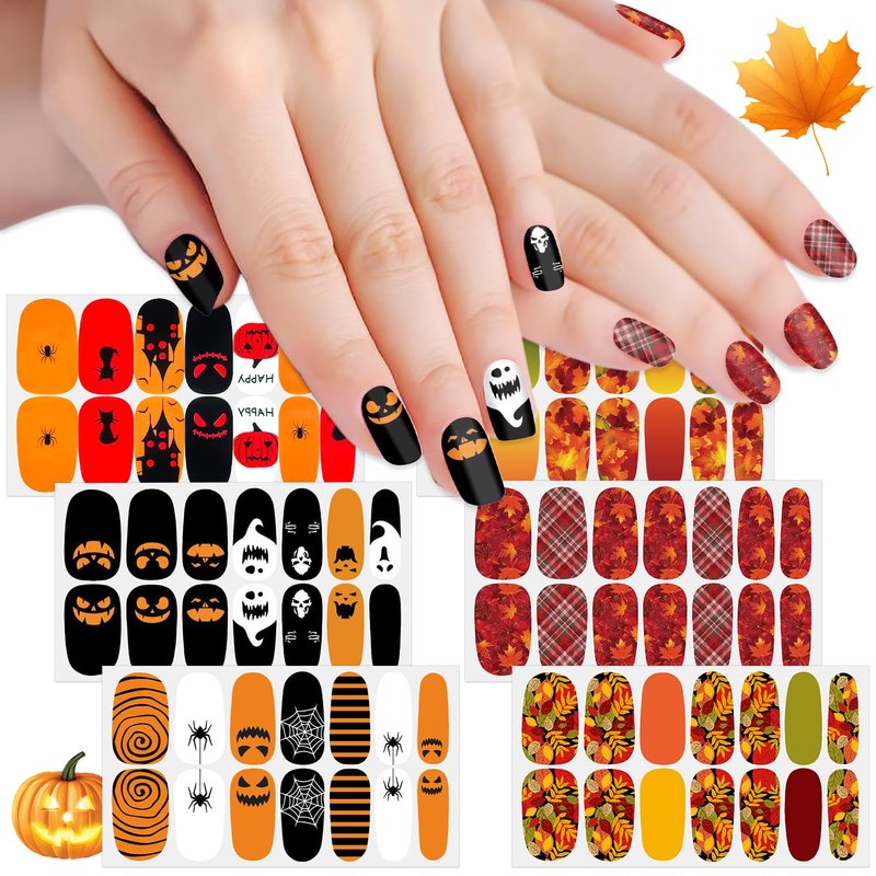 - Holiday Nail Art - These fingernail stickers are themed around fall and Halloween, featuring classic elements such as maple leaves, spider, pumpkins, ghosts, and more. the patterns is fashionable and funny, fill your nail design with a festive atmosphere.