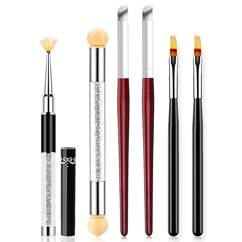SILPECWEE 6Pcs Ombre Brush For Gel Nails Acrylic Nail Art Brush Fan Nail Brush Nail Gradient Pen Nail Sponges Pens Nail Art Tools For Salon&DIY