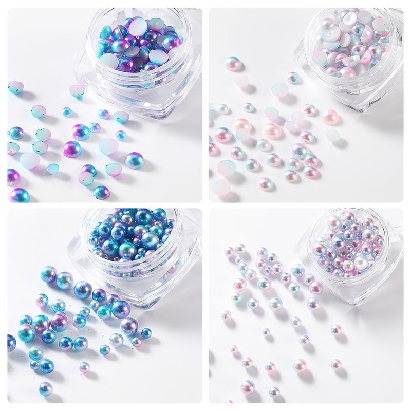 - 【Iridescent Pearls for Nails】 Each nail pearl is mermaid color, include circular and semi circular. the flat back pearls be made of premium resin and has smooth and shine surface which is not easy to fade.