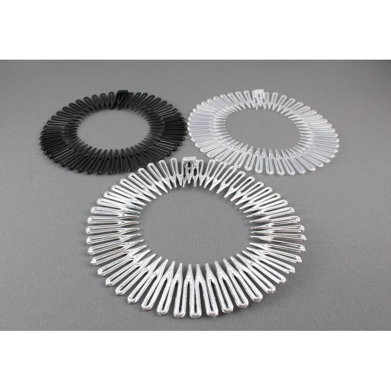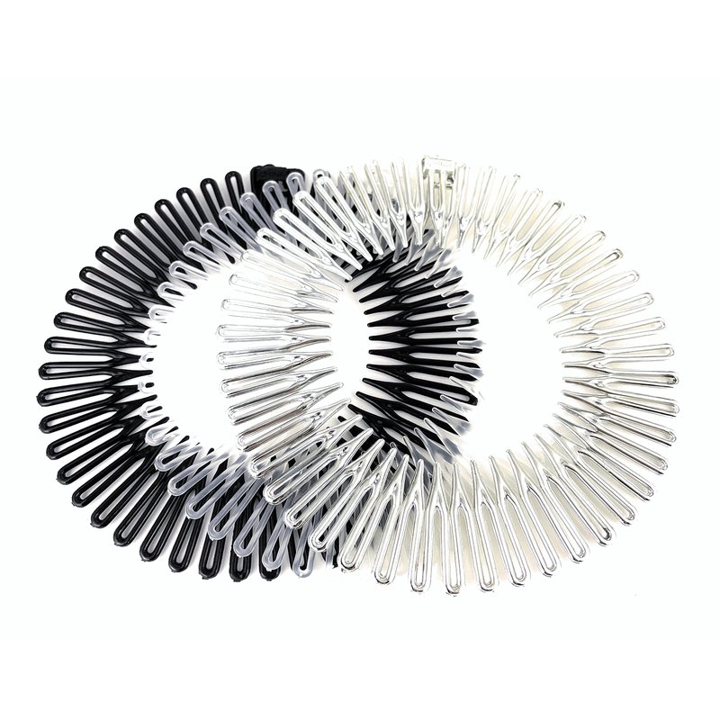 Silver Black Clear headband Set 3 Flex spider hair comb teeth zig zag stretch accordion style headband