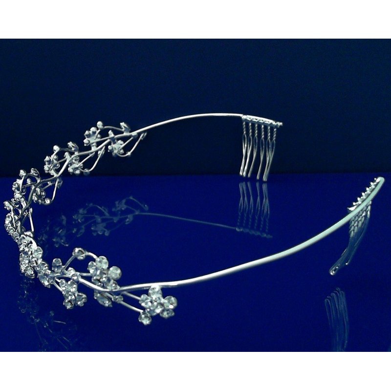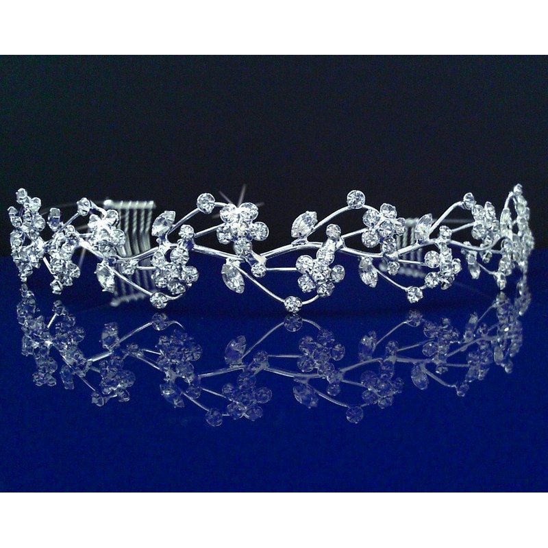 Silver Bridal Tiara Prom Crystal Rhinestone Flo...