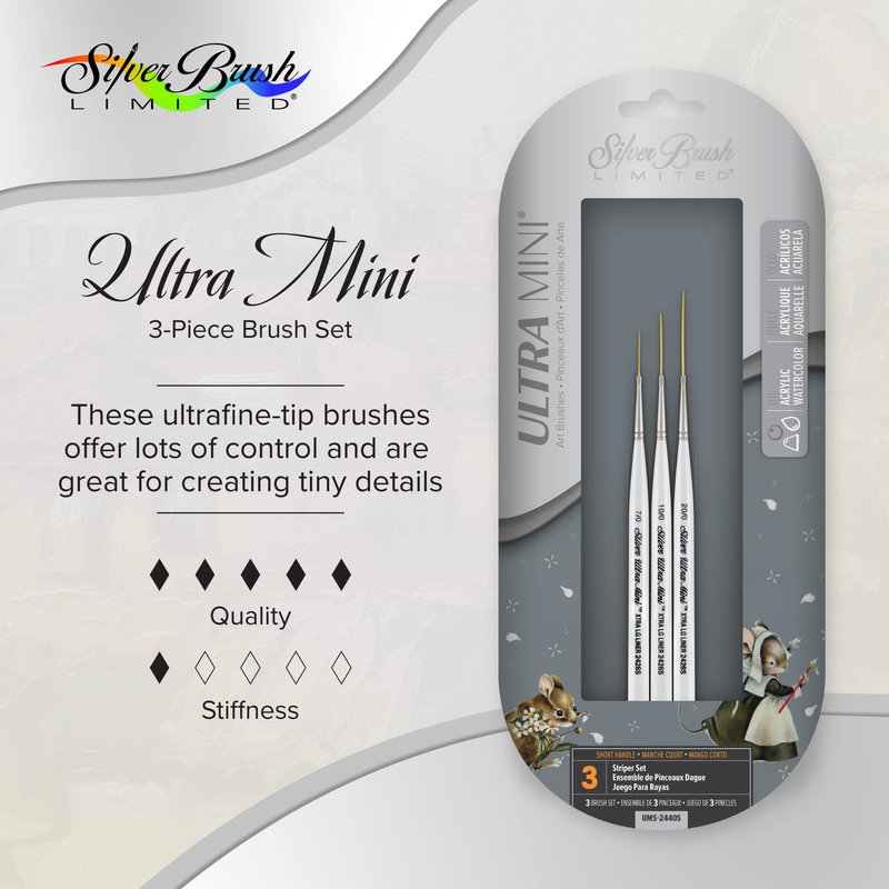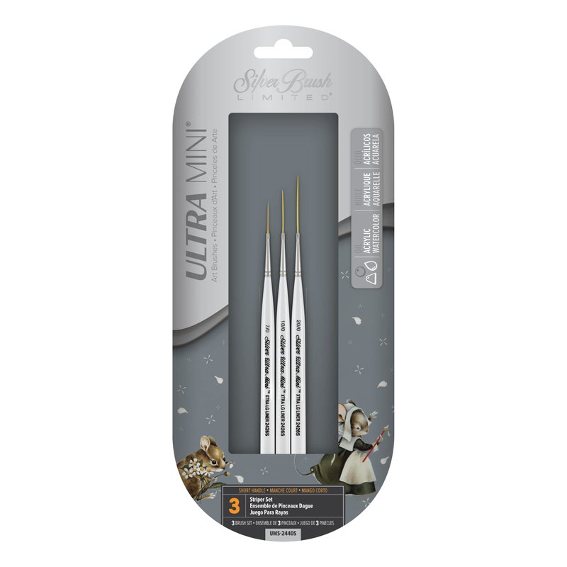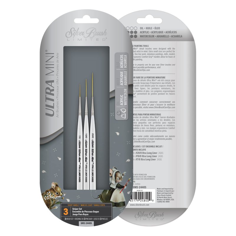 Silver Brush Limited UMS-2440S Ultra Mini Striper Set, Acrylic and Watercolor Brushes, Short-Handle Art Brushes, 3-Piece Set