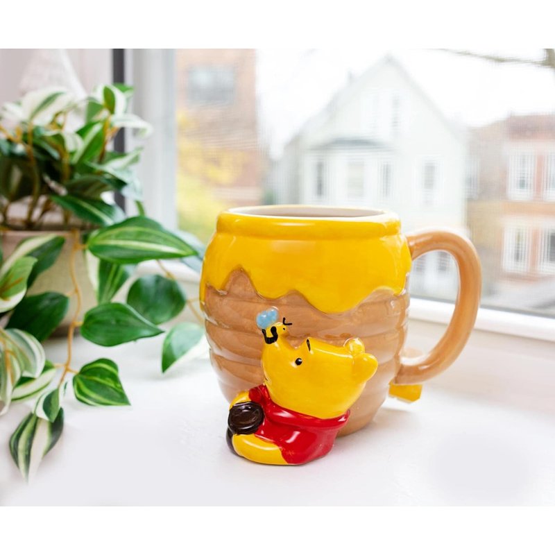 - 3D SCULPTED HONEY POT: Uniquely designed mug features a 3D sculpted honey pot with Pooh on the front and the words “Hunny” written on the back. It holds 23oz of your favorite hot or cold beverage, or makes the perfect collector’s item to store loose change, pens, etc.