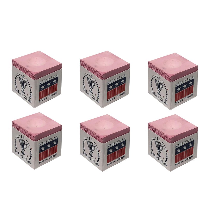 Half Dozen Silver Cup Cue Chalk. Strong, hard chalk grips cue tip for more accurate shooting. Quickly becoming the world's favorite chalk. Made in U.S.A.