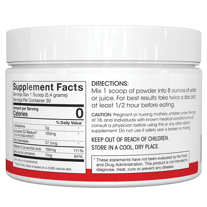For support and general maintenance, we recommend one scoop per day for ongoing intestinal health support. If you’re seeking urgent support of your gut we recommend an aggressive “loading” period of four scoops per day for 7 to 28 days depending on your severity, taken approximately 30 minutes before eating food. A daily high dose amount of L-Glutamine can range from 20 to 30 grams per day while Curcumin C3 Reduct is commonly taken at 400 mg for anti-oxidant, anti-inflammation, and immune system health.
