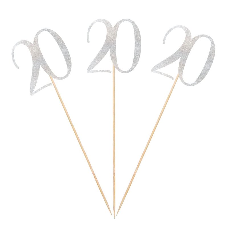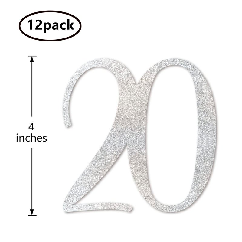 Silver Glitter 20th Birthday Centerpiece Sticks, 12-Pack Number 20 Table Topper Anniversary Party Decorations