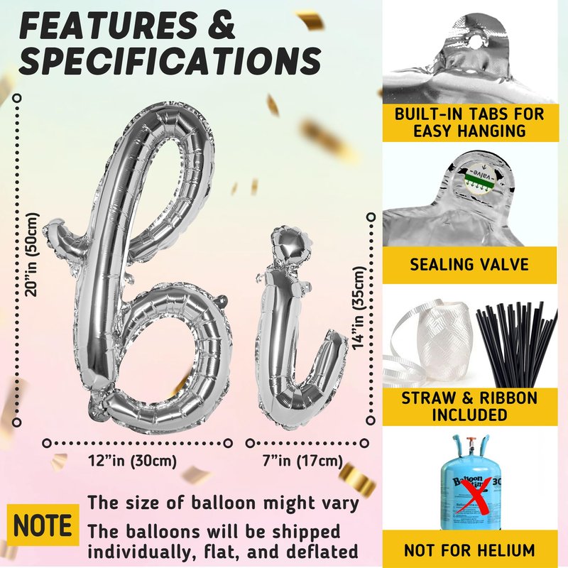 Our cursive Silver letter balloons will refine your event by brightening up the room.