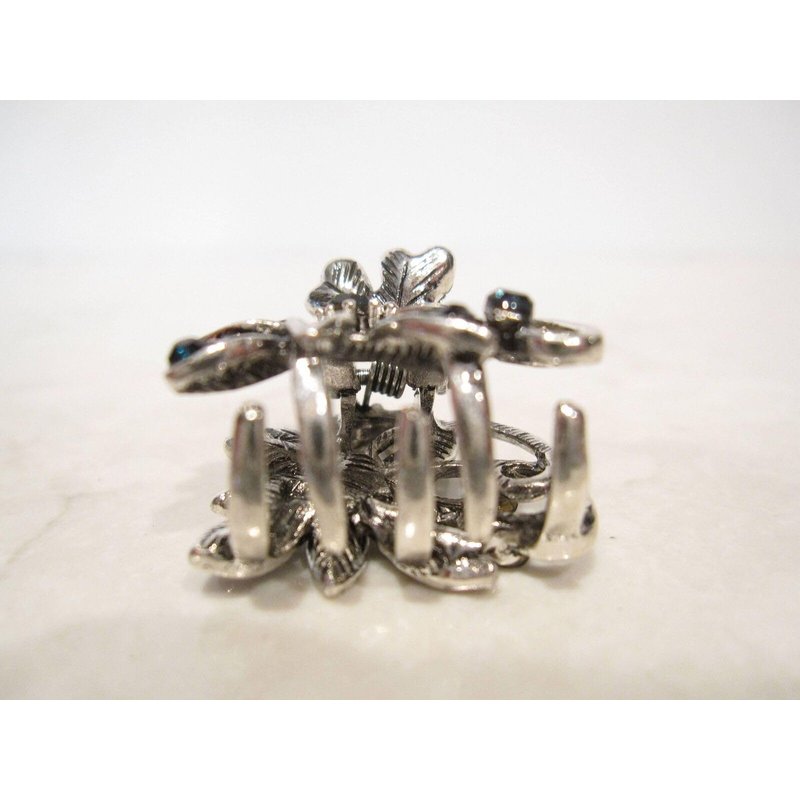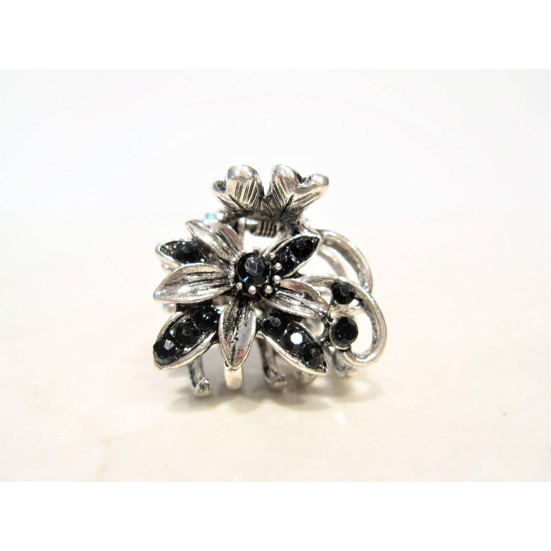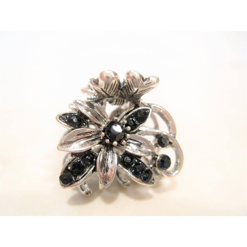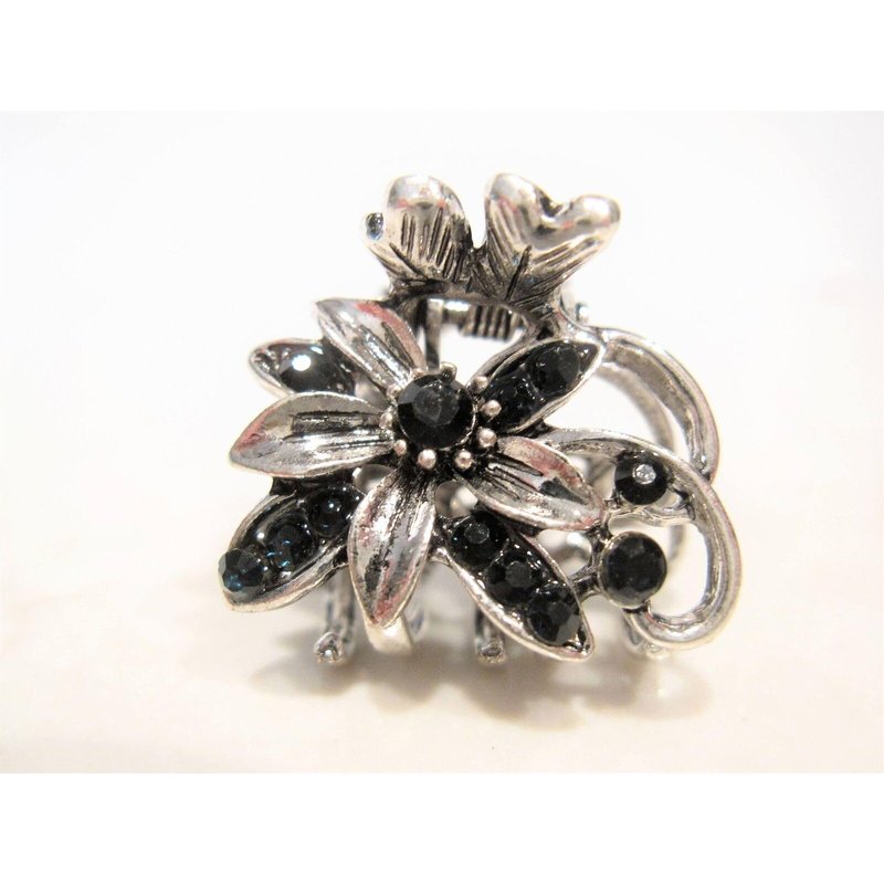 Silver metal blue/black flower crystal hair claw clip bridal clip