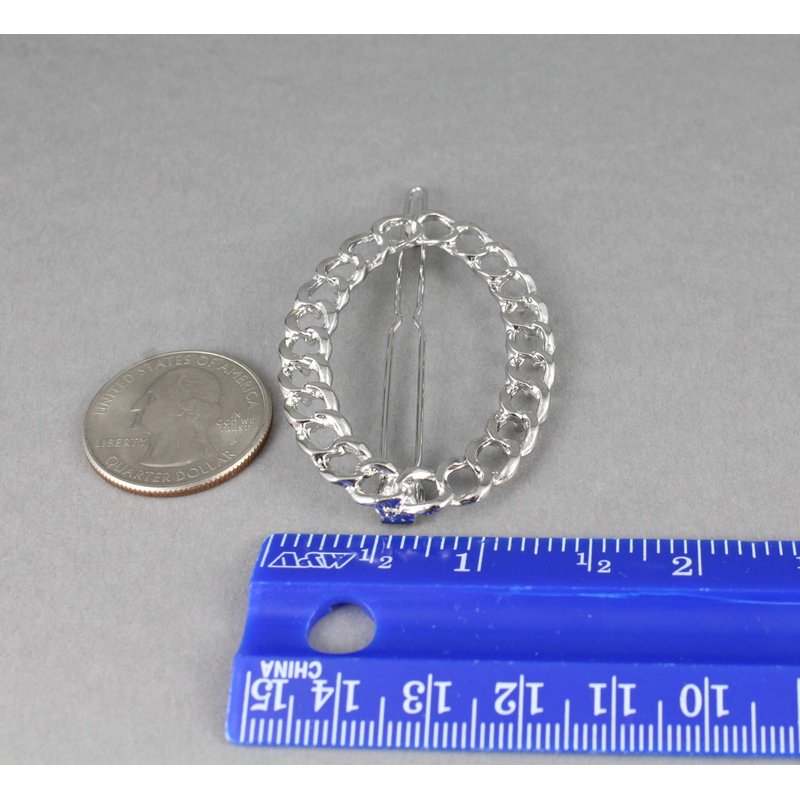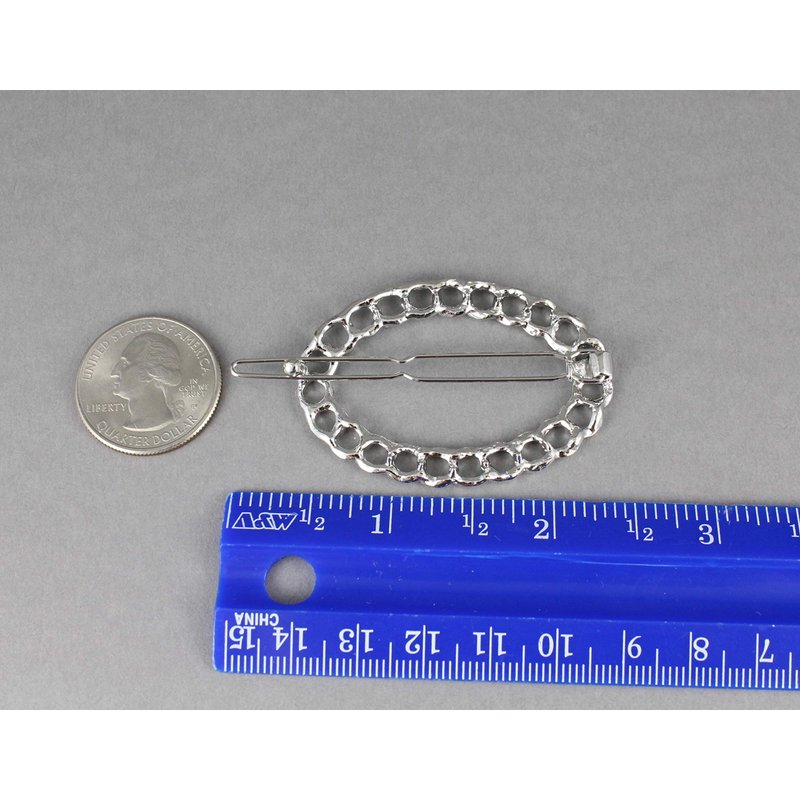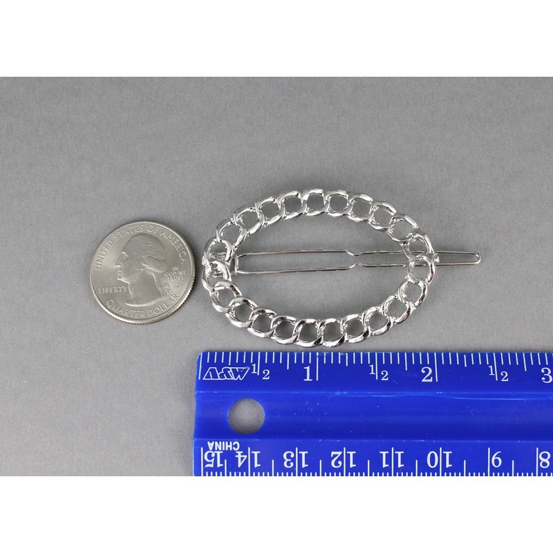 Silver oval barrette outline shape metal chain link hair clip barrette shiny clip oblong lightweight small barrette…