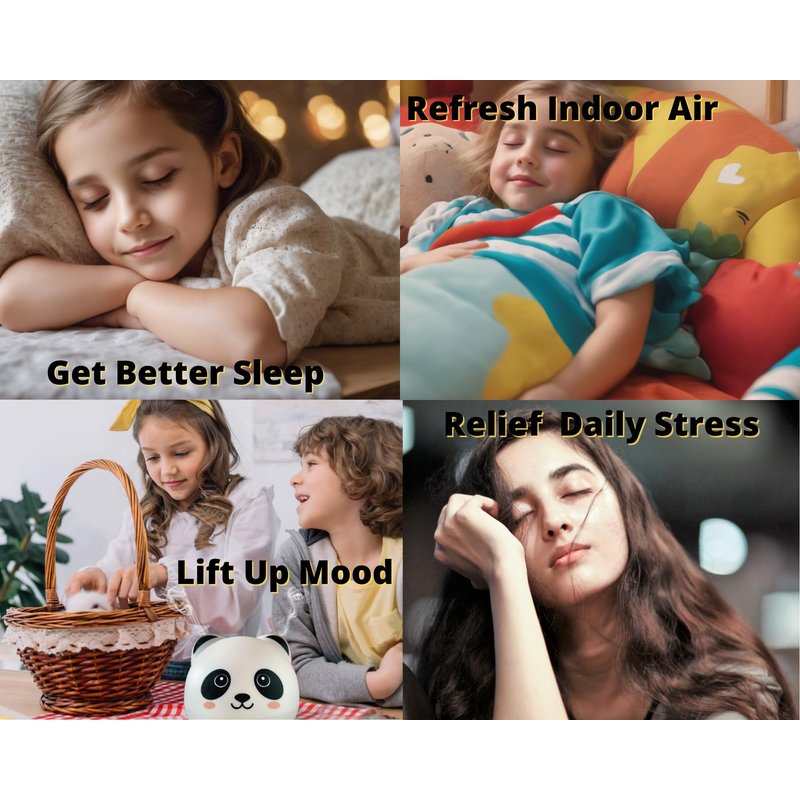 *This high capacity cute panda aromatherapy oil diffuser / humidifier is the best diffuser choice for any kids rooms. Capacity to last btw. 8-10 hrs it will help refresh and provide pleasant aroma in the room to rejuvenate the mind and body.