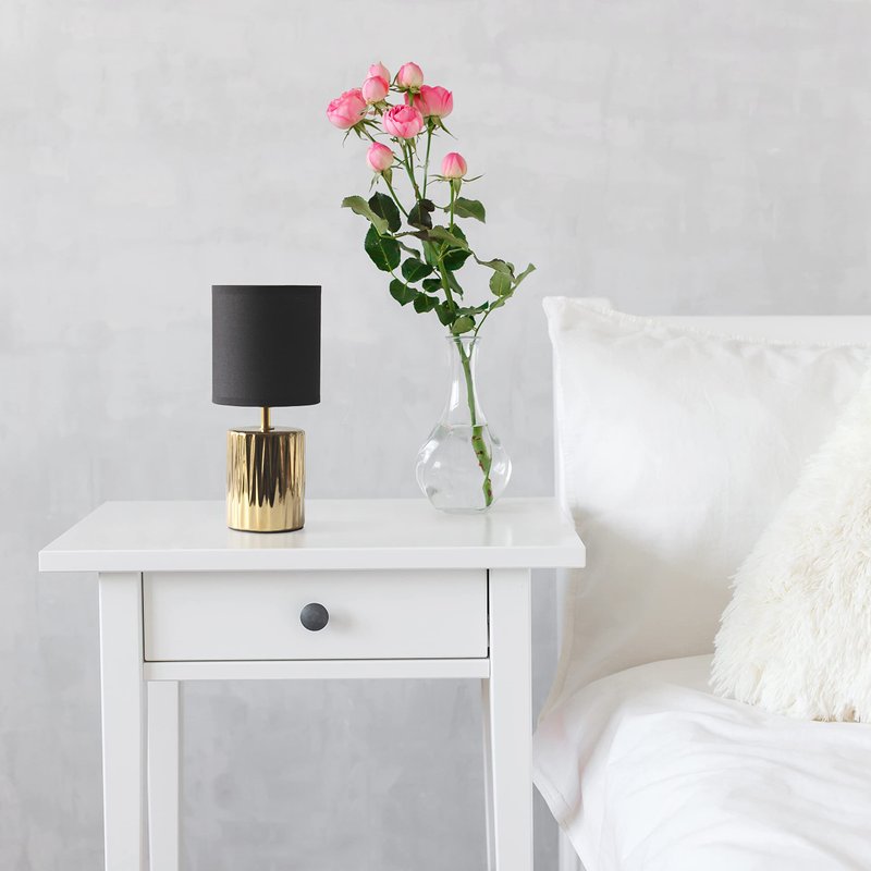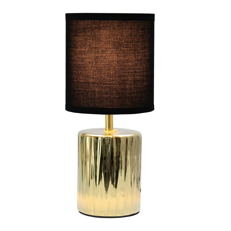 Simple Designs LT1132-GLD 11.61" Tall Contemporary Ruffled Metallic Gold Capsule Bedside Table Desk Lamp w Black Drum Fabric Shade for Home Decor, Bedroom, Living Room, Entryway, Office