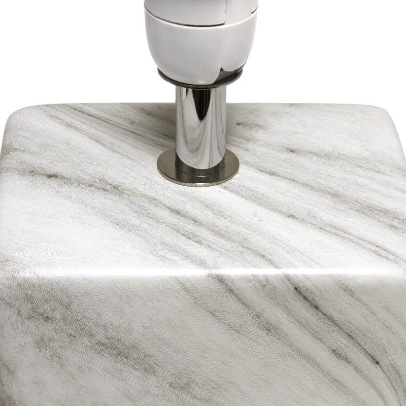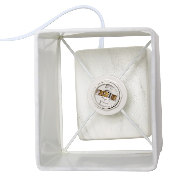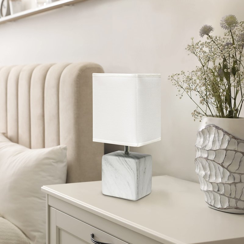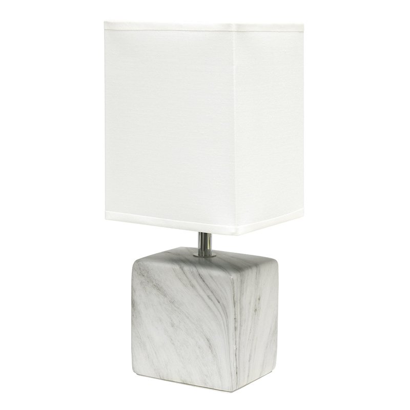 Simple Designs LT2071-WOW White Gray Petite Marbled Ceramic Bedside Mini Table Lamp with White Fabric Shade