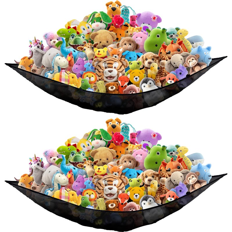 2 PK - SimpleHouseware Stuffed Animals Jumbo Toy Storage Hammock, Black