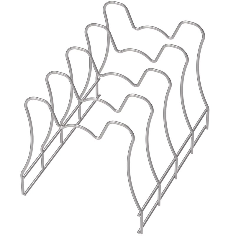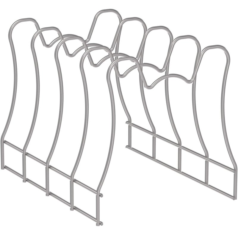 - Great pan organizer to save cabinet and countertop space, stores up to 4 pans