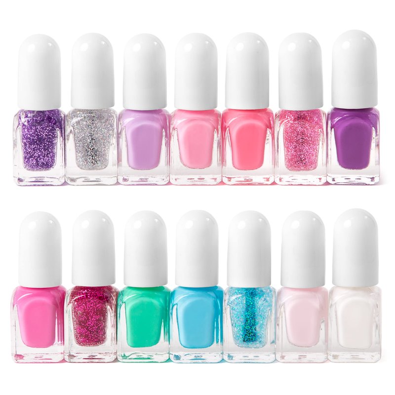 - This Simple Pleasures set of 14 sparkly shades is perfect for your little one's nails. With a range of colors spanning the entire spectrum, you're sure to find the perfect match for any outfit! Three of the colors have a glittery sheen, adding an extra touch of glamour.