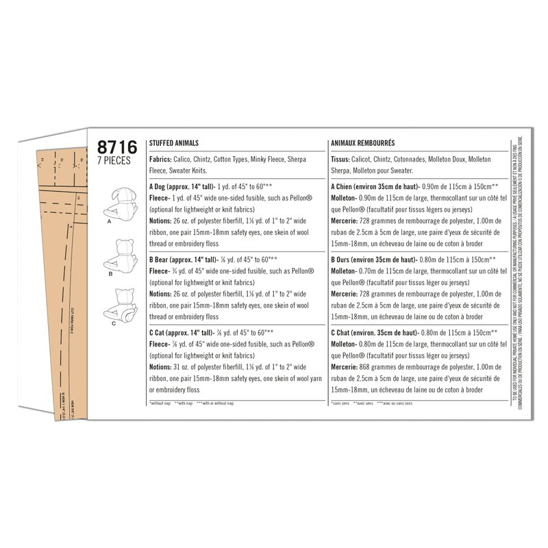 Simplicity 8716 Animals Stuffed Bear, Cat, and Dog Sewing Patterns by Elaine Heigl Designs, One Size Only