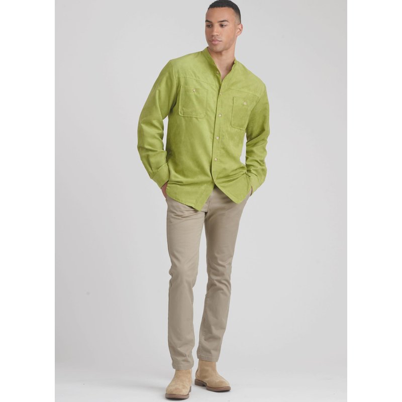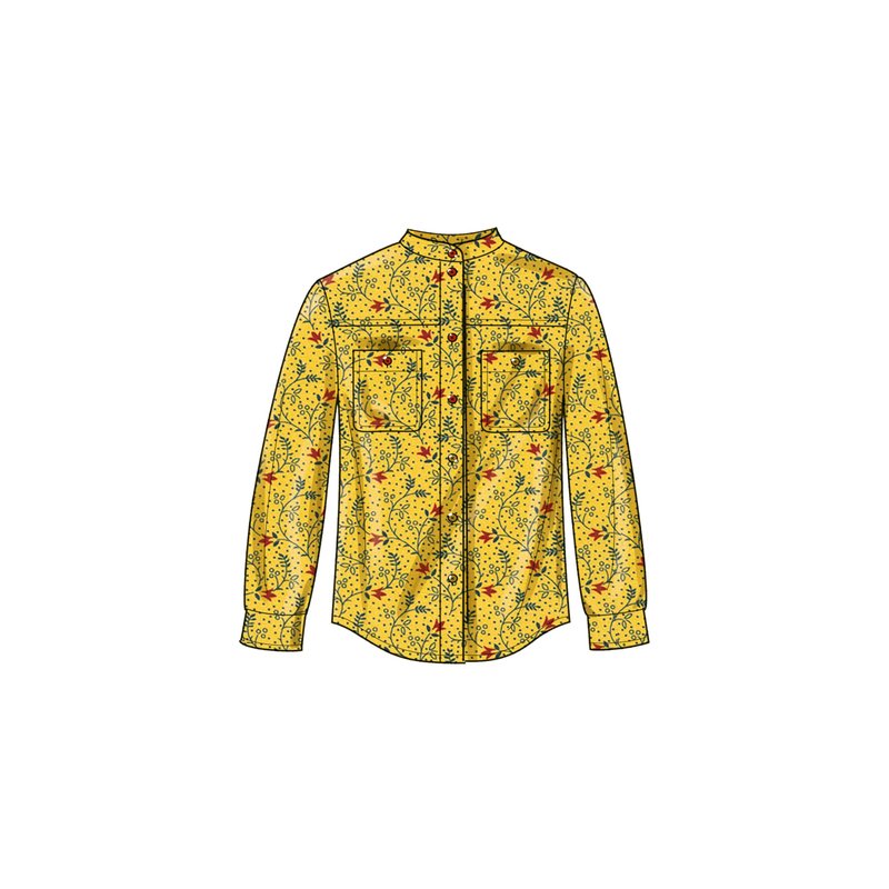 - Misses' and men's easy to sew shirt has banded or pointed collar, long sleeves with cuff, front and back yoke, and front patch pockets with button closure