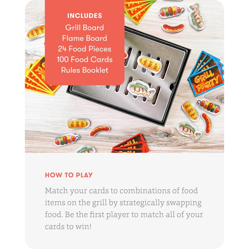 - HOW TO PLAY: The object of the game is to get rid of your game food cards by matching them to situations on the grill. Play up to 4 cards per turn & draw enough cards back to equal 4. The first player to get rid of all their grill food cards wins!