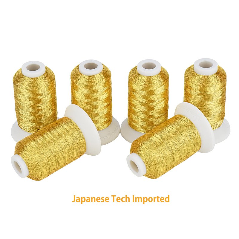 - ✔ 6 SHINY GOLD - The most shine classic Metallic colors, just bright like a diamond. Bring these glittery colors to decorate your sewing and embroidery fabric cloths. Metallic Embroidery Machine Thread is widely used for the emblem and uniform, simply make them Elegant and Royal!