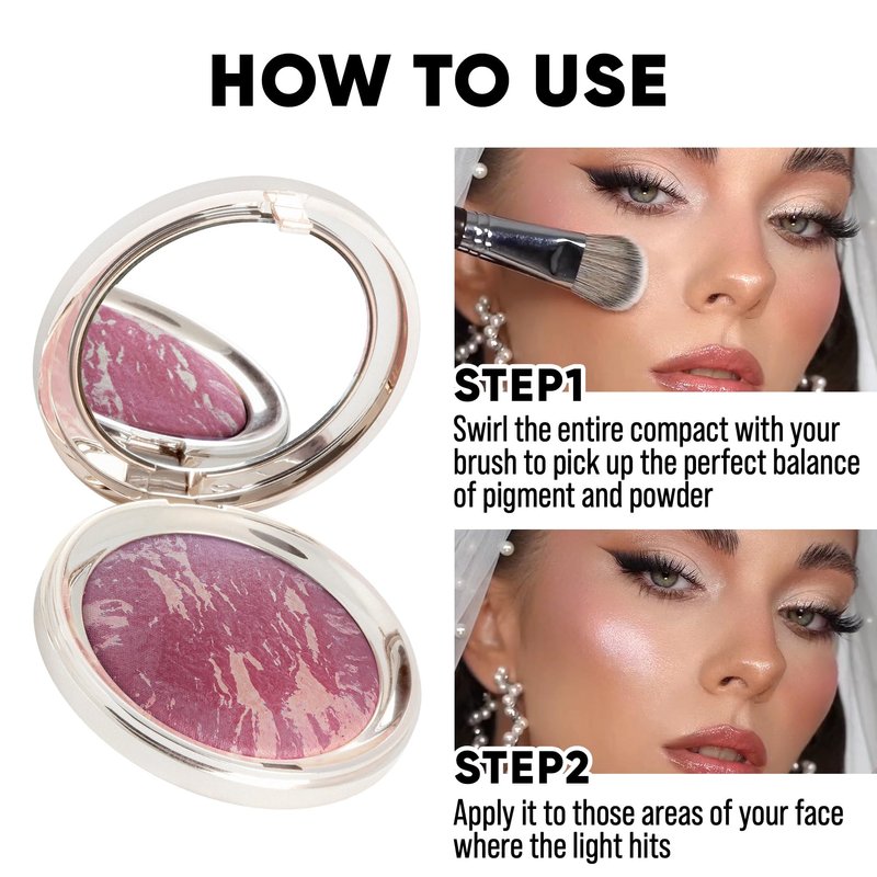- HOW TO USE: Lightly dab a fluffy brush into the pan, then sweep across the cheeks for blush that lasts all day.