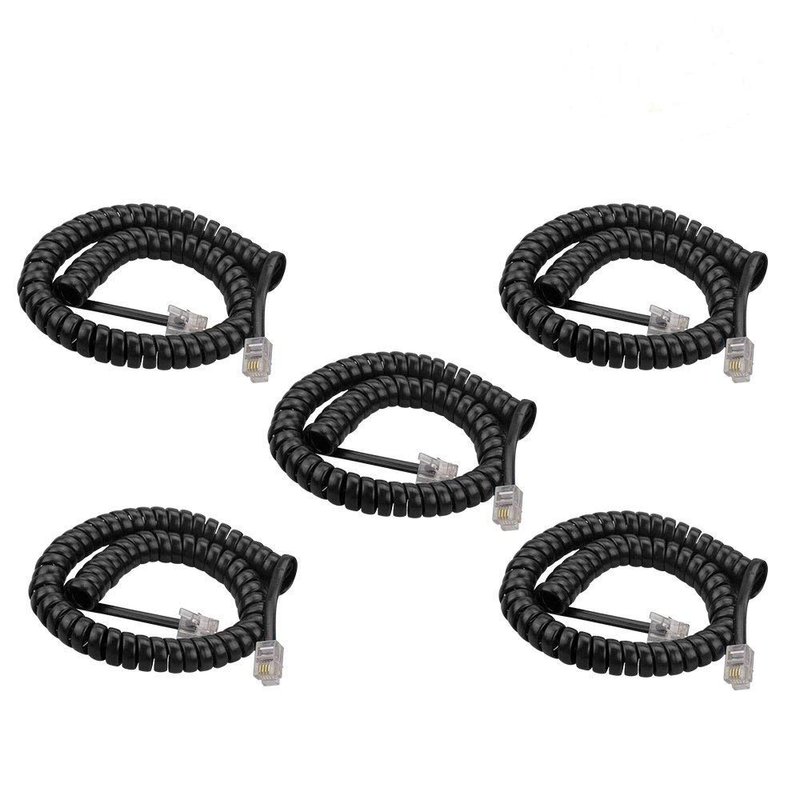 SINCODA 5 Pack 6Ft Uncoild /1.1 FT Modular Coiled Telephone Handset Cord for Telephone/Handset Black Curly Cord(Black)