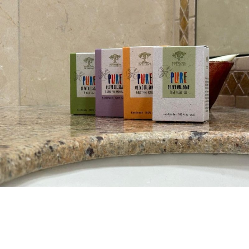 - Sindyanna of Galilee’s fair trade olive oil soaps are produced from extra virgin olive oil mixed with local herbs and minerals.