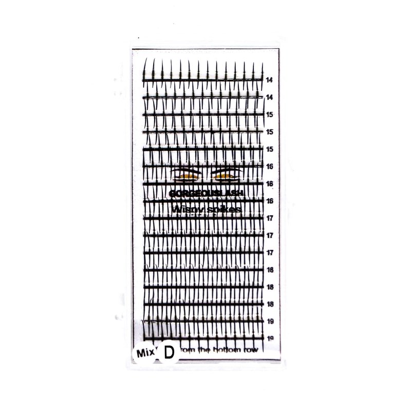 Single Spike Wispy Lashes. Mixed lengths,. Premade Eyelash Extensions. (D Curl, 14 to 19mm)