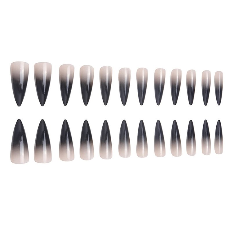 - 【Unique Design】 According to the most popular elements of the moment, these glossy stiletto nails are designed with black gradient.