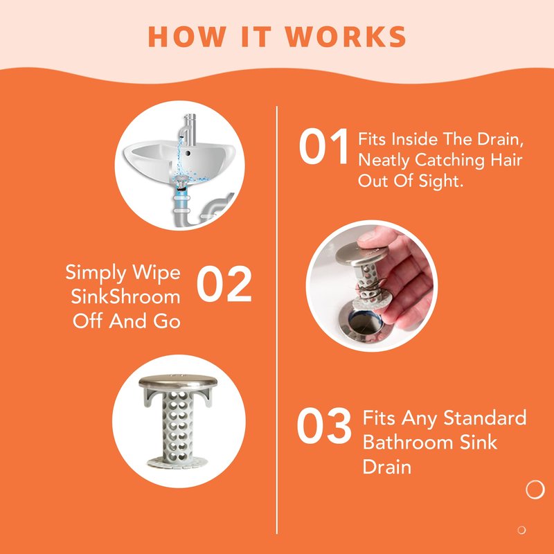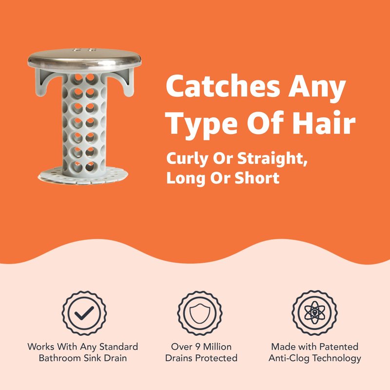 - Our sink drain strainer fits any standard bathroom sink drain and will catch every hair every time