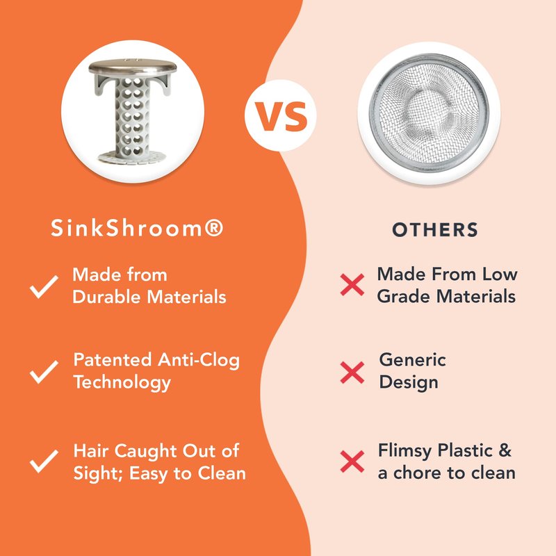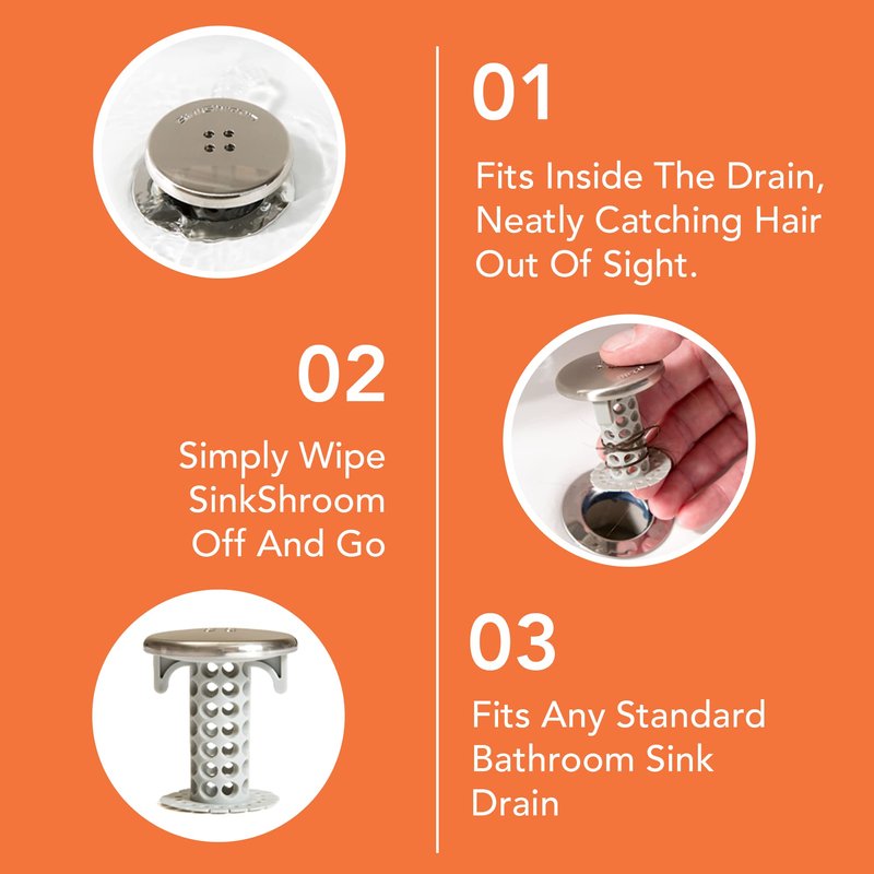 SinkShroom Revolutionary Bathroom Sink Drain Protector Hair Catcher, Strainer, Snare, Nickel Edition